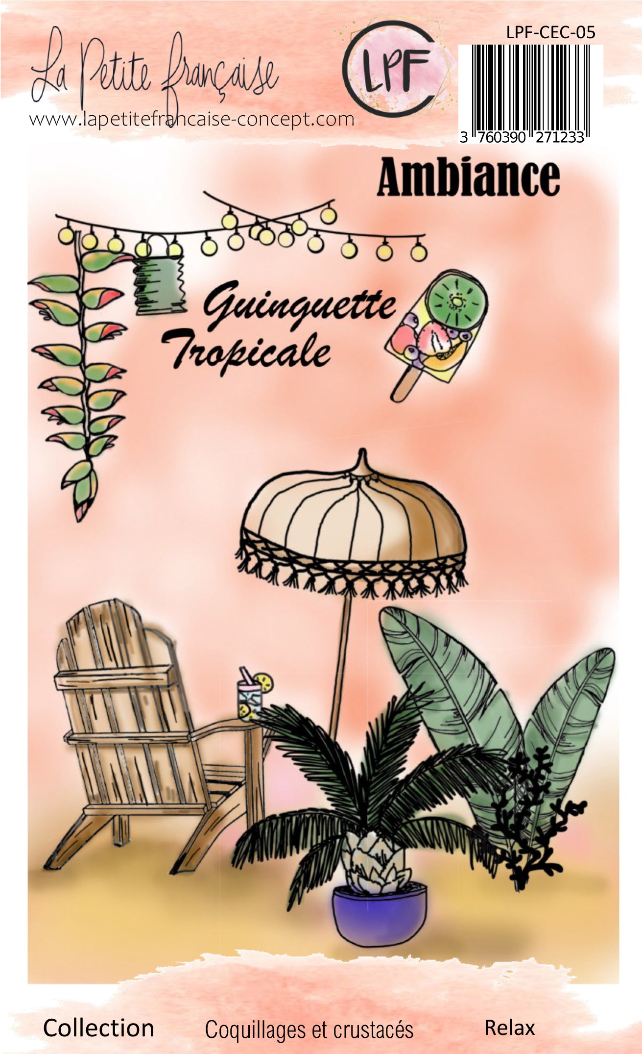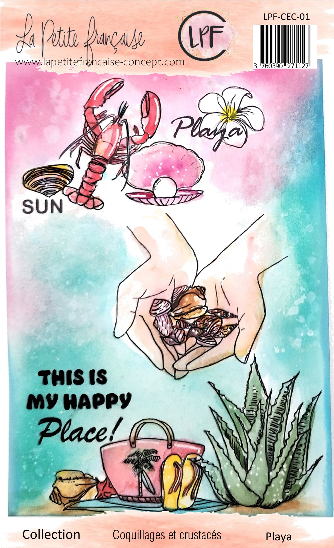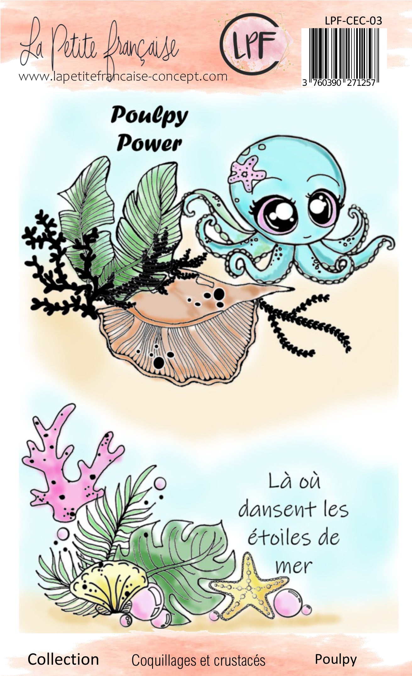 Pack comprenant les 5 planches de tampons, la planches de motifs à découpe ret les 2 set de dies de la collection Coquillages et crustacés à tarif préférentiel